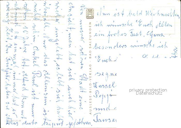 72413975 Rudolstadt Schloss Heidecksburg Marktplatz Volkskundemuseum Thueringer Bauerhaeuser Marktbrunnen postalisch nicht gelaufen Erhaltung siehe scans KatCode: 11110016073076