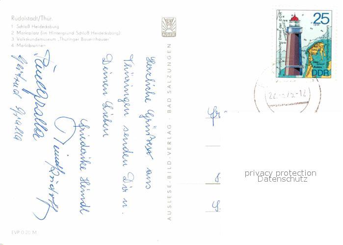 72625614 alte Postkarte Rudolstadt Schloss Heidecksburg Marktplatz Volkskundemuseum Thueringer Bauerhaeuser Marktbrunnen postalisch gelaufen Erhaltung siehe scans [WerneD78] KatCode: 11110016073076