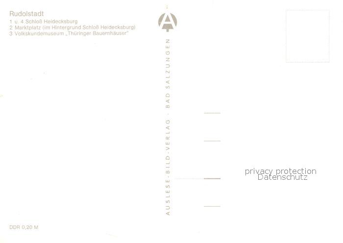 73040835 Rudolstadt Schloss Heidecksburg Marktplatz Volkskundemuseum Thueringer Bauernhaeuser Wappen postalisch nicht gelaufen Erhaltung siehe scans [FriedD77] KatCode: 11110016073076