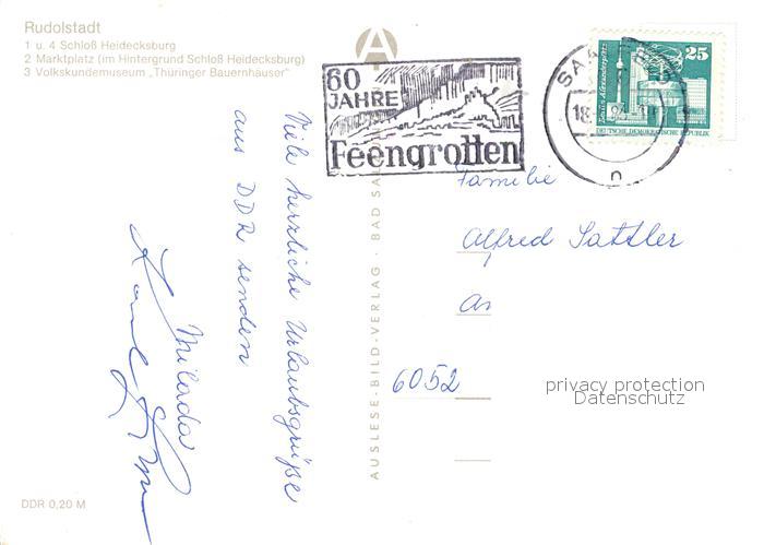 73179119 alte Postkarte Rudolstadt Schloss Heidecksburg Marktplatz Volkskundemuseum Thueringer Bauernhaeuser postalisch gelaufen Erhaltung siehe scans [FriedD77] KatCode: 11110016073076