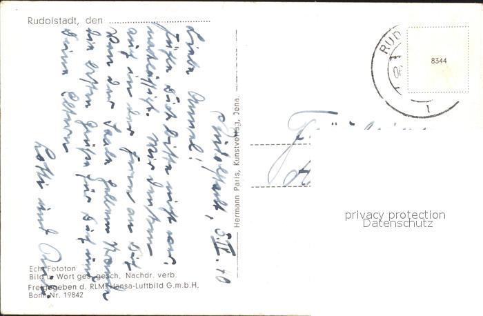 71942310 alte Postkarte Rudolstadt Schloss Heidecksburg und Schlosskaffee Fliegeraufnahme postalisch gelaufen KatCode: 11110016073076