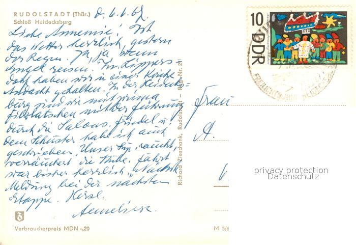 73549898 alte Postkarte Rudolstadt Schloss Heidecksburg postalisch gelaufen Erhaltung siehe scans [WerneD78] KatCode: 11110016073076