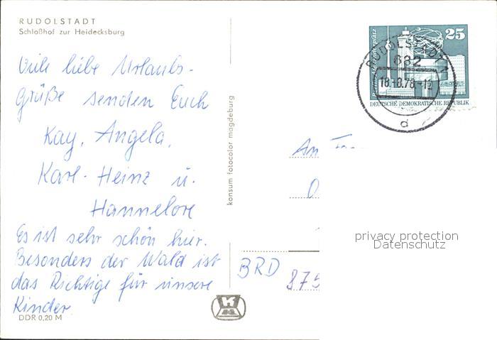 72229788 alte Postkarte Rudolstadt Schlosshof zur Heidecksburg postalisch gelaufen Erhaltung siehe scans KatCode: 11110016073076
