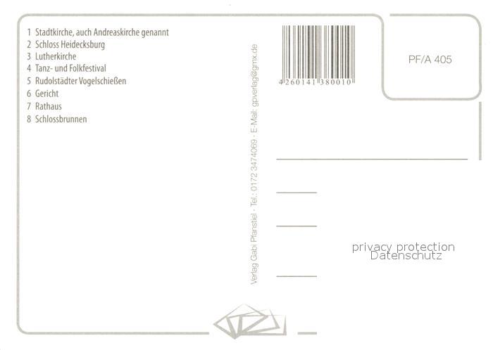 73179126 Rudolstadt Stadtkirche Andreaskirche Schloss Heidecksburg Lutherkirche Tanzfestival Folkfestival Vogelschiessen Gericht Rathaus Schlossbrunnen postalisch nicht gelaufen Erhaltung siehe scans [FriedD77] KatCode: 11110016073076