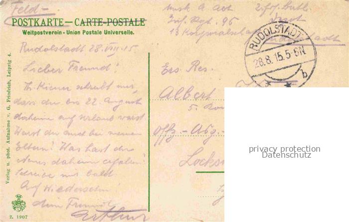 74137235 alte Postkarte Rudolstadt Thueringen Blick zur Lutherkirche Feldpost postalisch gelaufen Erhaltung siehe scans [WerneD78] KatCode: 11110016073076