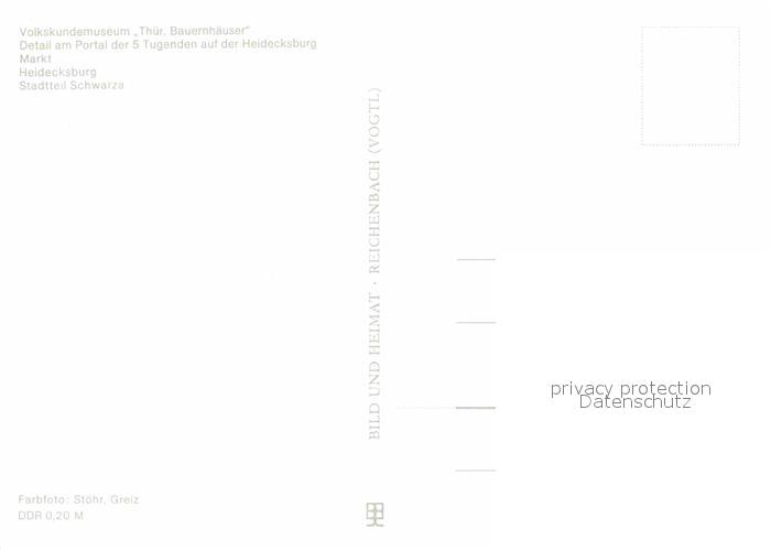 72651989 Rudolstadt Volkskundemuseum Thuer Bauernhaeuser Markt Heidecksburg Statue Stadtteil Schwarza postalisch nicht gelaufen Erhaltung siehe scans [FriedD77] KatCode: 11110016073076