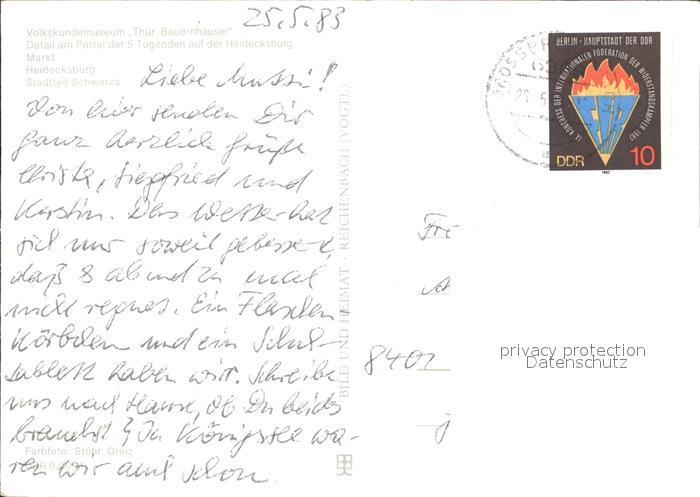 72372704 alte Postkarte Rudolstadt Volksmuseum Thuer. Bauernhaeuser Markt Heidecksburg Schwarza postalisch gelaufen Erhaltung siehe scans KatCode: 11110016073076