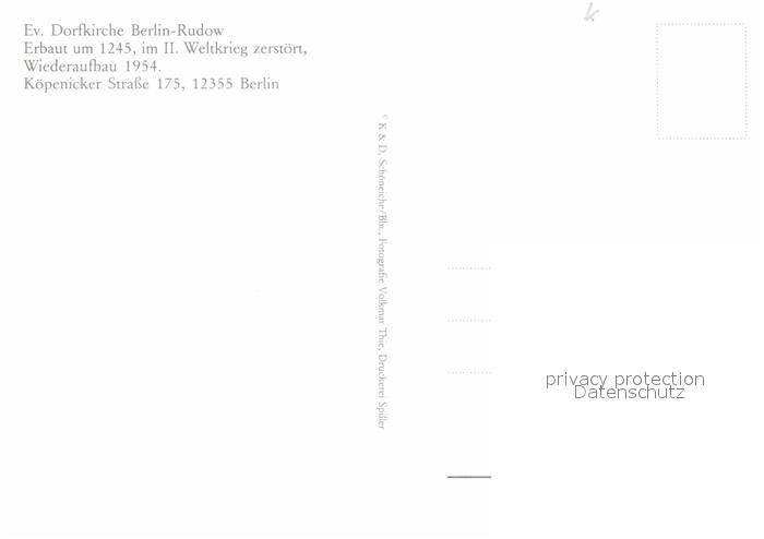72868348 Rudow Berlin Evangelische Dorfkirche 13. Jhdt. postalisch nicht gelaufen Erhaltung siehe scans [FriedD77] KatCode: 11110011000000