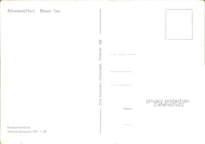 72179821 Ruebeland Harz Blauer See postalisch nicht gelaufen Erhaltung siehe scans KatCode: 11110015085100