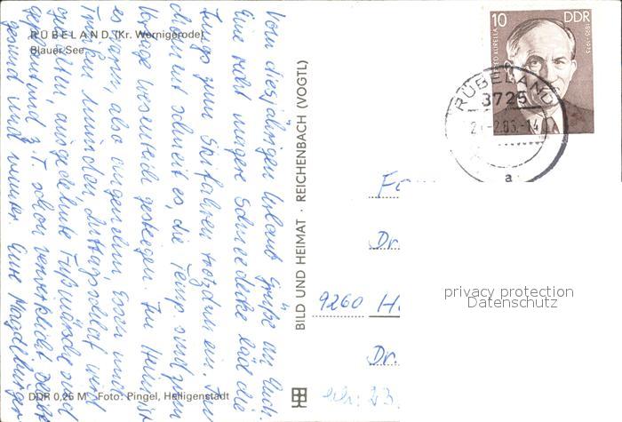 72153713 alte Postkarte Ruebeland Harz Blauer See postalisch gelaufen Erhaltung siehe scans KatCode: 11110015085100