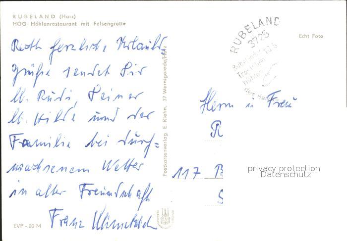 72138529 alte Postkarte Ruebeland Harz Hoehenrestaurant mit Felsengrotte postalisch gelaufen Erhaltung siehe scans KatCode: 11110015085100