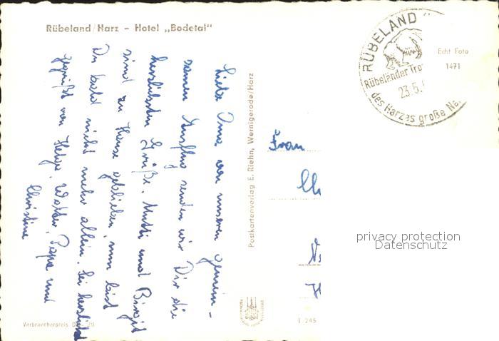 72313260 alte Postkarte Ruebeland Harz Hotel Bodetal postalisch gelaufen Erhaltung siehe scans KatCode: 11110015085100
