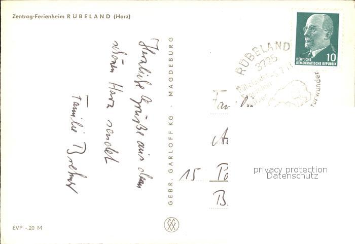 72083961 alte Postkarte Ruebeland Harz Zentrag Ferienheim postalisch gelaufen KatCode: 11110015085100