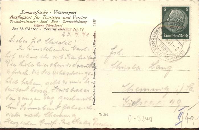 40905634 Ruebenau aststätte Weisser Hirsch x KatCode 11110014181260