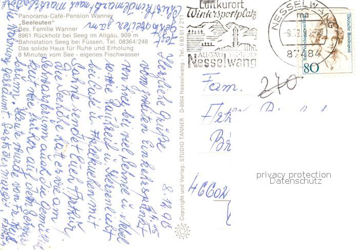 73645710 alte Postkarte Rueckholz Panorama Cafe Pension Wanner Seeleuten Landschaftspanorama Alpen postalisch gelaufen Erhaltung siehe scans [FriedD77] KatCode: 11110009777168
