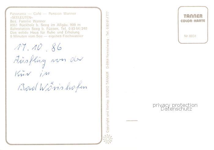 73800919 Rueckholz Panorama Cafe Pension Wanner Seeleuten postalisch nicht gelaufen Erhaltung siehe scans [WerneD78] KatCode: 11110009777168