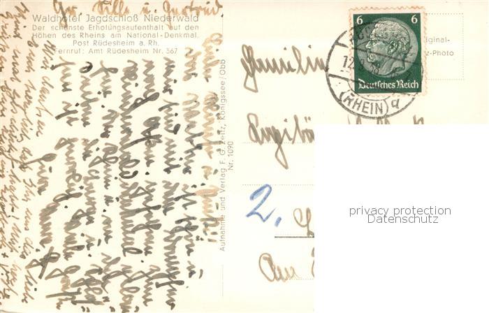 73778355 alte Postkarte Ruedesheim am Rhein Ansicht vom Rhein aus mit Nationaldenkmal postalisch gelaufen Erhaltung siehe scans [FriedD77] KatCode: 11110006439013