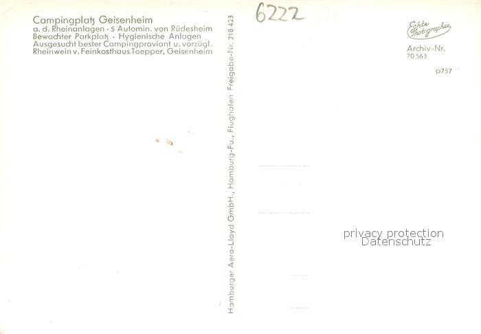 73706673 Ruedesheim am Rhein Campingplatz Geisenheim Fliegeraufnahme postalisch nicht gelaufen Erhaltung siehe scans [WerneD78] KatCode: 11110006439013