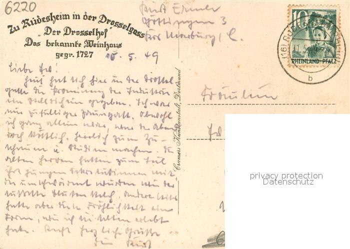73697674 alte Postkarte Ruedesheim am Rhein Drosselgass Weinhaus Drosselhof postalisch gelaufen Erhaltung siehe scans [LiesaD40] KatCode: 11110006439013
