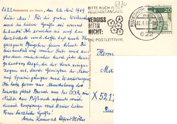 73935964 alte Postkarte Ruedesheim am Rhein Fliegeraufnahme postalisch gelaufen Erhaltung siehe scans [FriedD77] KatCode: 11110006439013
