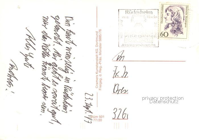 73761910 alte Postkarte Ruedesheim am Rhein Fliegeraufnahme postalisch gelaufen Erhaltung siehe scans [FriedD77] KatCode: 11110006439013