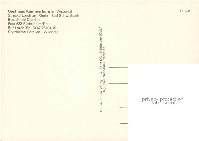 73865538 Ruedesheim am Rhein Gasthaus Kammerburg im Wispertal Restaurant postalisch nicht gelaufen Erhaltung siehe scans [FriedD77] KatCode: 11110006439013