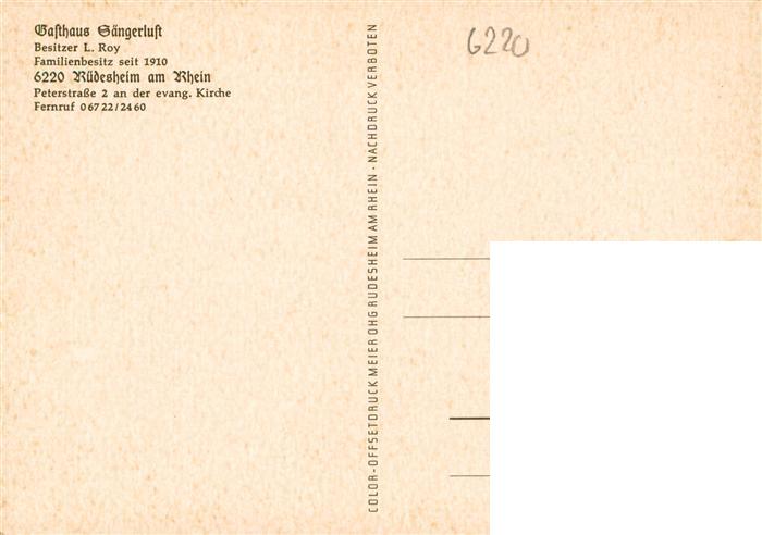 73936543 Ruedesheim am Rhein Gasthaus Saengerlust Gastraum postalisch nicht gelaufen Erhaltung siehe scans [FriedD77] KatCode: 11110006439013