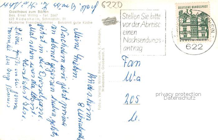 73707612 alte Postkarte Ruedesheim am Rhein Gasthaus Zum Baeren Nationaldenkmal postalisch gelaufen Erhaltung siehe scans [LiesaD40] KatCode: 11110006439013