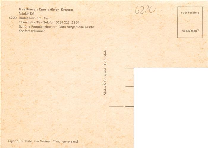 73936018 Ruedesheim am Rhein Gasthaus Zum gruenen Kranz mit Gaestehaus postalisch nicht gelaufen Erhaltung siehe scans [FriedD77] KatCode: 11110006439013