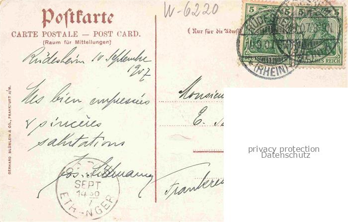 74122244 alte Postkarte RueDESHEIM am Rhein Hessen Panorama postalisch gelaufen Erhaltung siehe scans [WerneD78] KatCode: 11110006439013