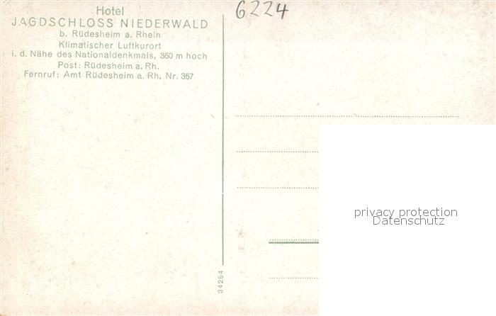 73696538 Ruedesheim am Rhein Hotel Jagdschloss Niederwald postalisch nicht gelaufen Erhaltung siehe scans [FriedD77] KatCode: 11110006439013