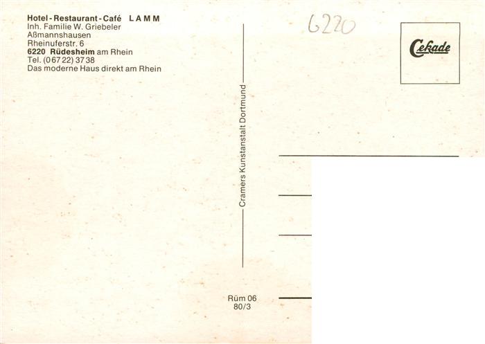 73936529 Ruedesheim am Rhein Hotel Restaurant Cafe Lamm postalisch nicht gelaufen Erhaltung siehe scans [FriedD77] KatCode: 11110006439013