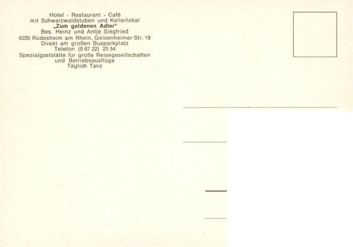 73935999 Ruedesheim am Rhein Hotel Restaurant Zum goldenen Adler mit Schwarzwaldstuben und Kellerlokal postalisch nicht gelaufen Erhaltung siehe scans [FriedD77] KatCode: 11110006439013