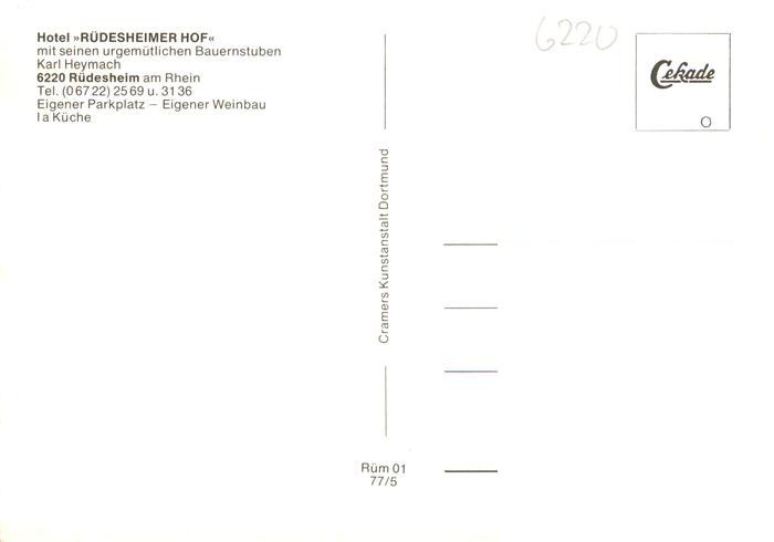 73936525 Ruedesheim am Rhein Hotel Ruedesheimer Hof postalisch nicht gelaufen Erhaltung siehe scans [FriedD77] KatCode: 11110006439013