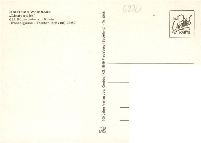 73936536 Ruedesheim am Rhein Hotel Weinhaus Lindenwirt Drosselgasse postalisch nicht gelaufen Erhaltung siehe scans [FriedD77] KatCode: 11110006439013