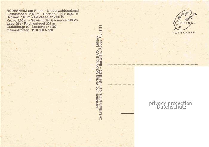 74036813 RueDESHEIM am Rhein Niederwalddenkmal Panorama Blick ins Rheintal postalisch nicht gelaufen Erhaltung siehe scans [FriedD77] KatCode: 11110006439013