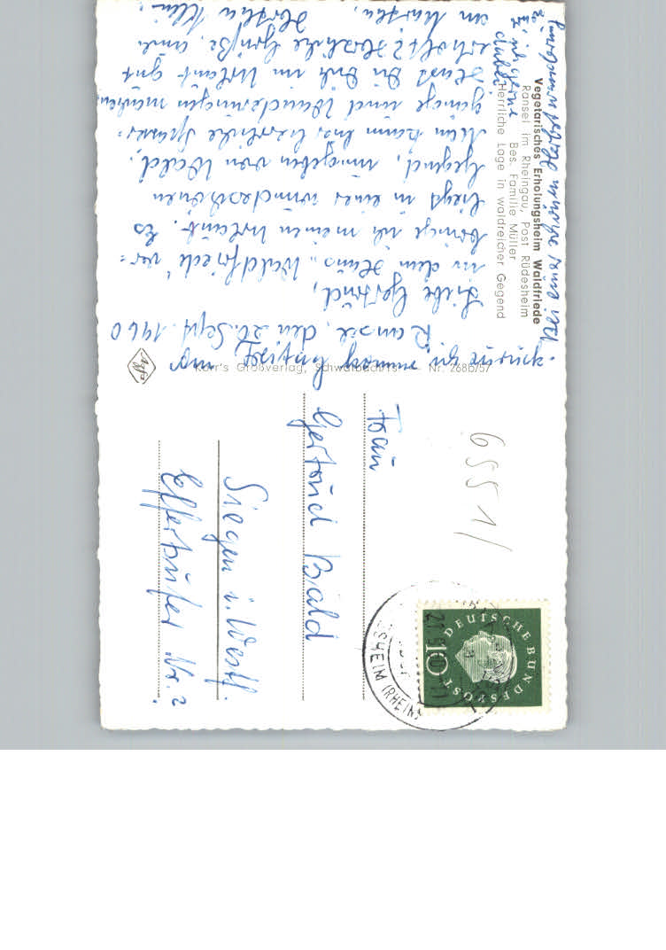 31146779 Ruedesheim am Rhein Pension Waldfriede postalisch nicht gelaufen KatCode: 11110006439013