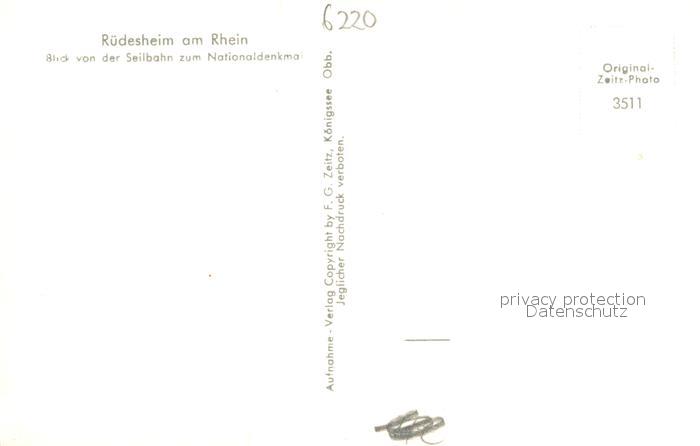 73697359 Ruedesheim am Rhein Seilbahn zum Nationaldenkmal postalisch nicht gelaufen Erhaltung siehe scans [LiesaD40] KatCode: 11110006439013