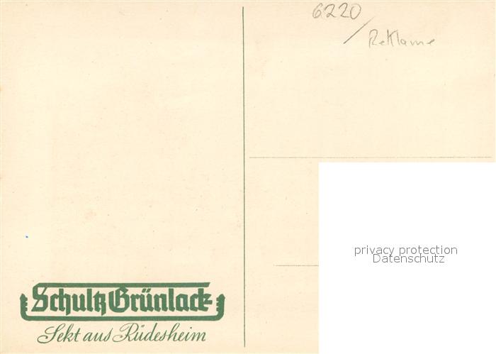 73697680 Ruedesheim am Rhein Sektkellerei Schultz Gruenlack Reklame postalisch nicht gelaufen Erhaltung siehe scans [LiesaD40] KatCode: 11110006439013