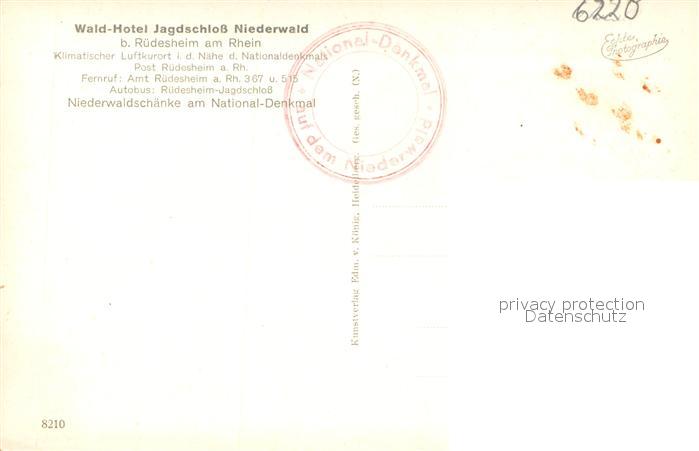 73697342 Ruedesheim am Rhein Wald- Hotel Jagdschloss Niederwaldschaenke am National- Denkmal postalisch nicht gelaufen Erhaltung siehe scans [LiesaD40] KatCode: 11110006439013