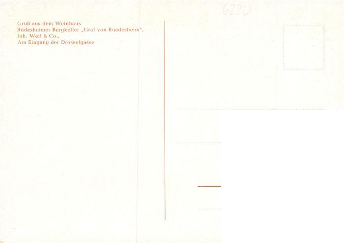 73936003 Ruedesheim am Rhein Weinhaus Ruedesheimer Bergkeller Graf von Ruedesheim postalisch nicht gelaufen Erhaltung siehe scans [FriedD77] KatCode: 11110006439013
