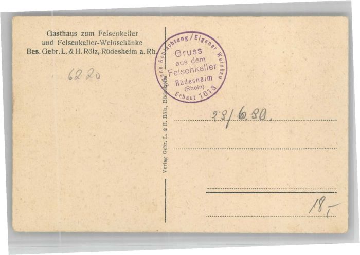 40691693 Ruedesheim Gasthaus zum Felsenkeller postalisch nicht gelaufen Alte Ansichtskarte Postkarte Katcode 11110006439013