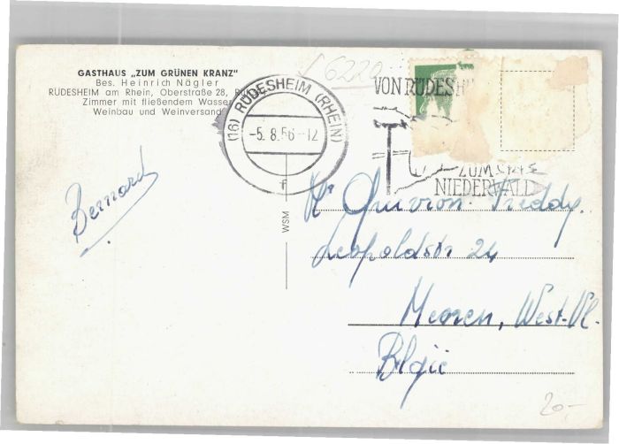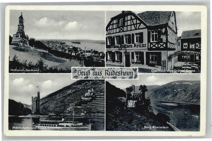 40691677 Ruedesheim Gasthaus zum gruenen Kranz Burg Rheinstein Maeuseturm x postalisch gelaufen Alte Ansichtskarte Postkarte alte Postkarte Katcode 11110006439013