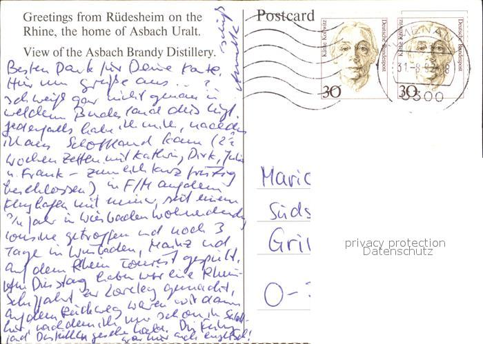 72573995 alte Postkarte Ruedesheim Rhein Asbach Brandy Distillery postalisch gelaufen Erhaltung siehe scans [LiesaD40] KatCode: 11110006439013