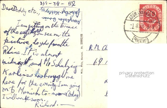 72094272 alte Postkarte Ruedesheim Rhein Asmannshausen Gasthof Krone Jagdzimmer postalisch gelaufen Erhaltung siehe scans KatCode: 11110006439013