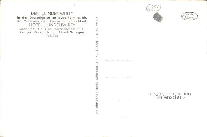72096180 Ruedesheim Rhein Der Lindenwirt in der Drosselgasse postalisch nicht gelaufen Erhaltung siehe scans KatCode: 11110006439013