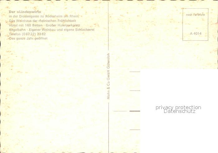 71928501 Ruedesheim Rhein Der Lindenwirt Restaurant postalisch nicht gelaufen Erhaltung siehe scans KatCode: 11110006439013