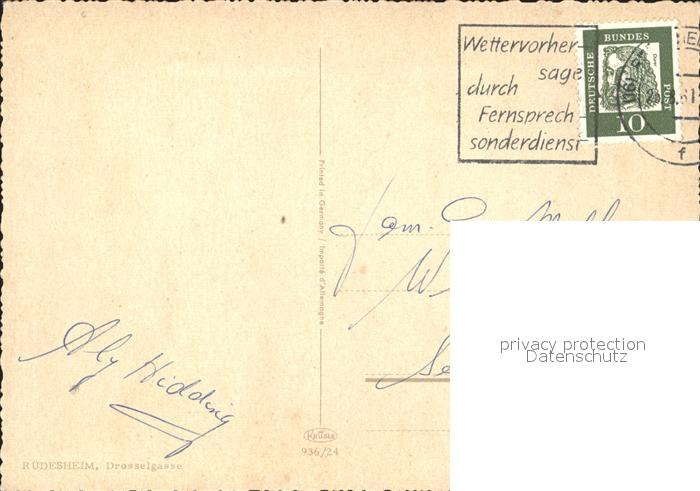 72327638 alte Postkarte Ruedesheim Rhein Drosselgasse postalisch gelaufen Erhaltung siehe scans KatCode: 11110006439013