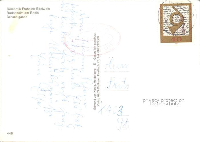 72023743 alte Postkarte Ruedesheim Rhein Drosselgasse postalisch gelaufen KatCode: 11110006439013