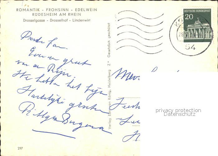 72606668 alte Postkarte Ruedesheim Rhein Drosselgasse Drosselhof Lindenwirt postalisch gelaufen Erhaltung siehe scans [NatalD47] KatCode: 11110006439013